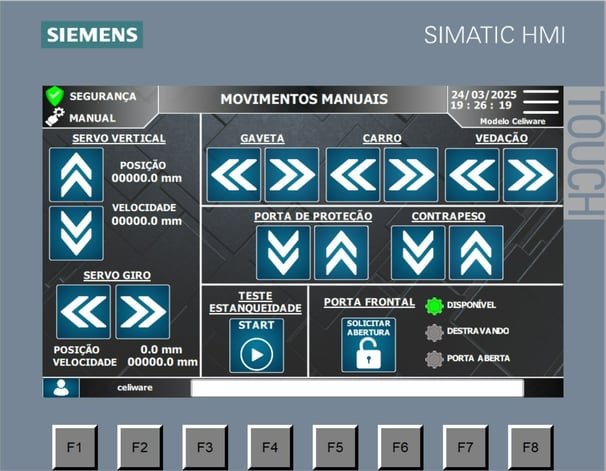 Acesse e comande todos os atuadores da máquina de forma individual. Ideal para testes, ajustes ou manutenções, essa tela permite verificar se os movimentos estão respondendo corretamente, garantindo total controle e segurança na operação manual.