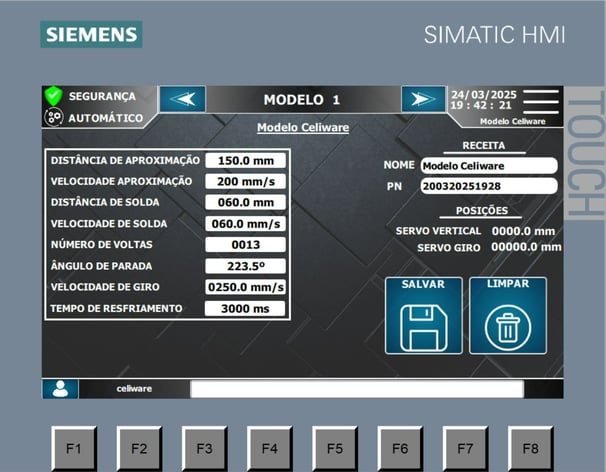Com apenas alguns toques, você pode salvar ou limpar as informações, agilizando trocas de modelo e garantindo padronização na produção.